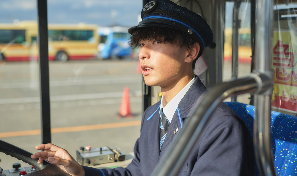 高卒以上の新卒の方を対象とした、養成運転士制度です。普通一種免許を持っていない新卒の方でも、入社後に普通一種免許、大型二種免許を取得し、バス運転士になることができます。